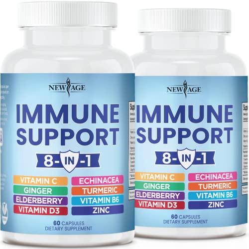 8 Powerful Immunity Ingredients –New Age has formulated the best potent immune support capsule packed with over 1550mg per serving of the top 8 immunity boosting ingredients. Sambucus Elderberry with Turmeric and Ginger help provide antioxidant support, Zinc citrate oxide (an essential nutrient) helps to promote immune function, we’ve added Vitamin D3 5000 IU, Vitamin C, and Echinacea to bring you a powerful elderberry supplement great for any season and B6 for daily energy