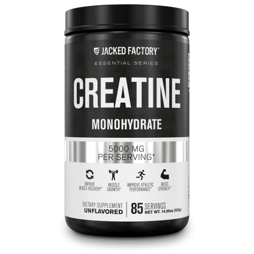 Pure Creatine Monohydrate Powder: Jacked Factory Creatine Monohydrate powder features 5000mg of unflavored, pure creatine monohydrate in every scoop. Our creatine powder mixes easily in virtually any liquid and can be stacked with your favorite fitness supplements, such as pre-workout and BCAAs.