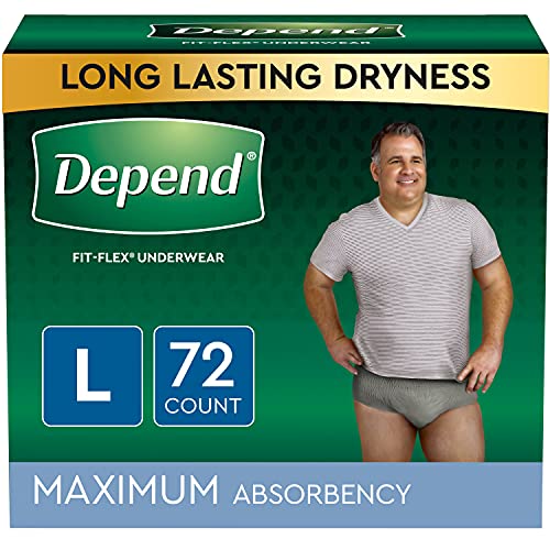 Depend Fit-Flex Adult Incontinence Underwear for Men, Disposable, Maximum Absorbency, Grey, Large, 72 Count
