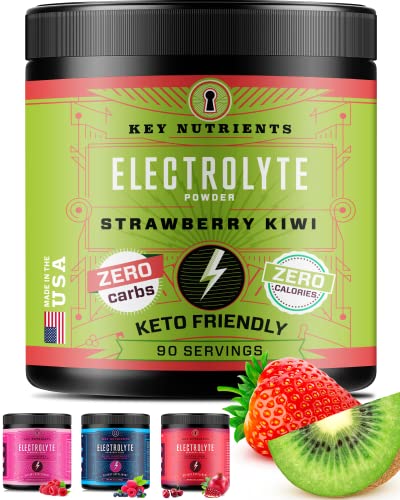 KeyNutrients Electrolytes Powder: Zero Calorie Strawberry-Kiwi/Blue Raspberry/Cherry-Pom/Raspberry Powder in 90, 40 or…