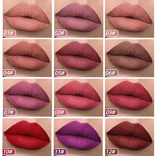 * 12 Colors Matte Velvety Liquid Lipstick Set, long Lasting Waterproof