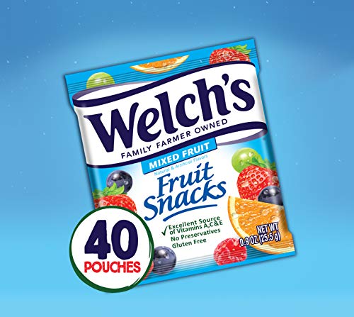 Welch’s Fruit Snacks, Mixed Fruit, Gluten Free, Bulk Pack, 0.9 oz Individual Single Serve Bags 40 Count (Pack of 1)